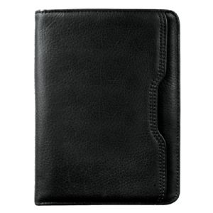 Description Very stylish travel accessory. Open main compartment for storing all travel documents. Multiple pockets for passport, tickets, itinerary, credit cards and business cards. Black leather.