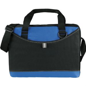 Description Popular conference bag with zippered main pocket and easy access front Velcro pocket with pen loop and D-ring for keys. Adjustable shoulder strap and two carry handles. Made from 600D polycanvas in blue and black colour. Supplied with business card stitched on bag. Available in 3 colours.