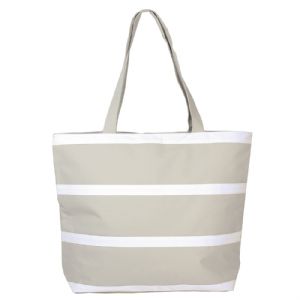 Description Stylish grey and white striped bag made from 600D woven polyester.