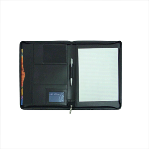Features Features include zipper closure, pen loop, business card holders, 2 internal gusseted pockets and A4 lined pad which inserts from the top. Pen not included. Check out our Tablet Compatibility chart to see which tablets fit in the product.