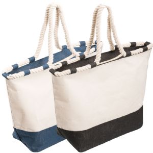 Description Made with nautical rope handles, canvas and dyed jute material. Available in 2 colours.