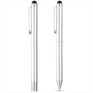Features Polished chrome upper barrels. Rubberised stylus ends. Pens supplied with blue ink. Supplied in a Luxe gift box.