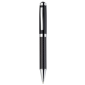 Description This popular ballpoint carbon fibre pen has a delightful woven patterned fabric captured under the glass. With gloss black and silver finish. Supplied with Black ink.
