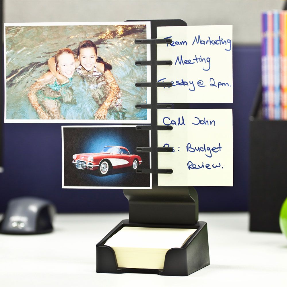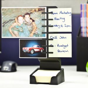 Includes space for standard square sticky notes which are included.