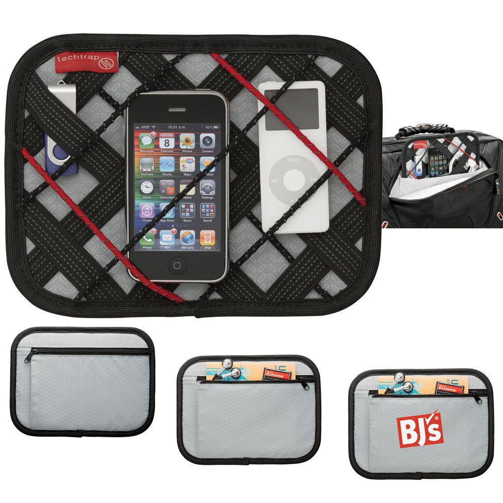 Use our Tech Trap technology to transport your iPhone, Blackberry, Android phones, iPod or other technology devices plus their complementing cables and power devices. Place into any bag for convenient storage or transportation. (Phone, iPod and USB drive shown are not included)
