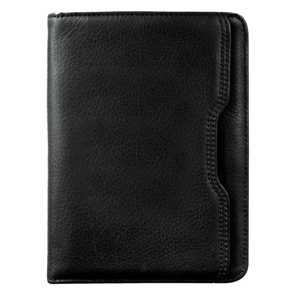 Very stylish travel accessory. Open main compartment for storing all travel documents. Multiple pockets for passport, tickets, itinerary, credit cards and business cards. Black leather. |