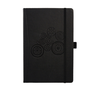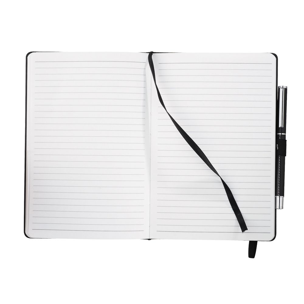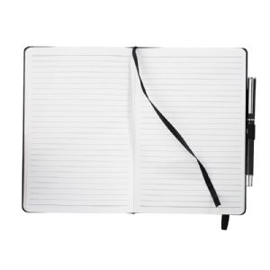 Built-in elastic closure with elastic pen loop. Stitched cover. Corresponding cover colour ribbon page marker, Includes 80 sheets of lined paper. Available in 2 colours.