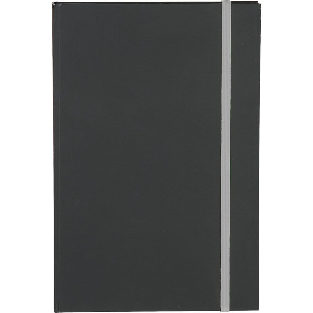 Features bright coloured edges with corresponding coloured elastic closure. Soft matte black cover highlights the most subtle or colourful logos.