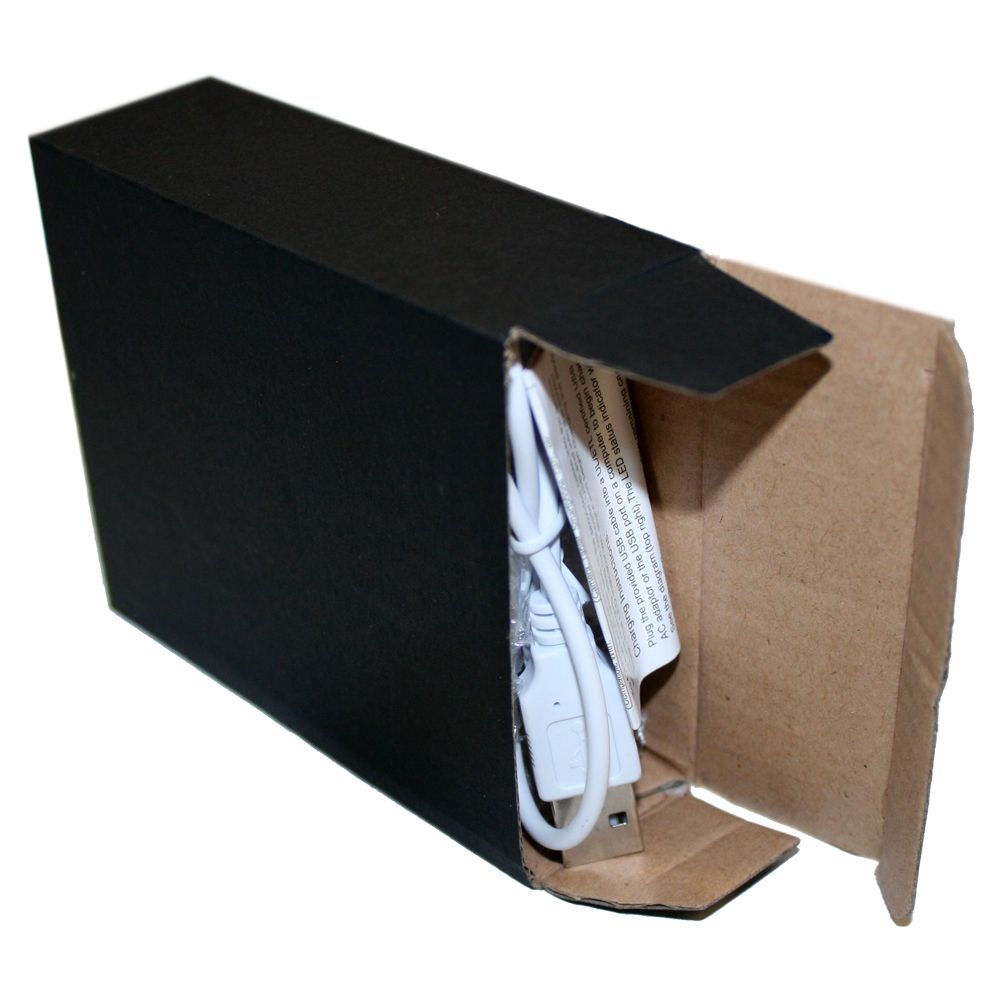 Charger is packed in a bubble bag, cable sitting on top of the charger with manual, all items are presented in a plain black tuck box. Packaging Size: 118mm(w) x 87mm(h) x 35mm(d)