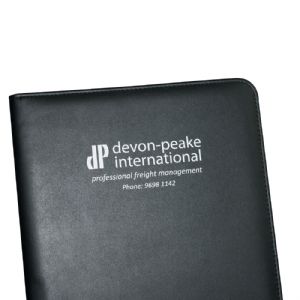Features business card holder, pen loop, internal gusset and A4 lined pad which inserts from the top. Pen not included.