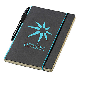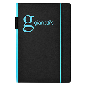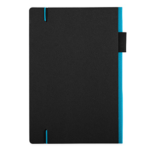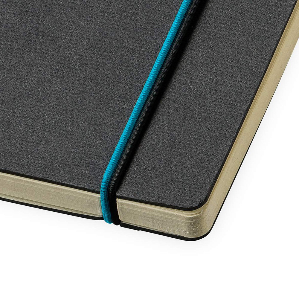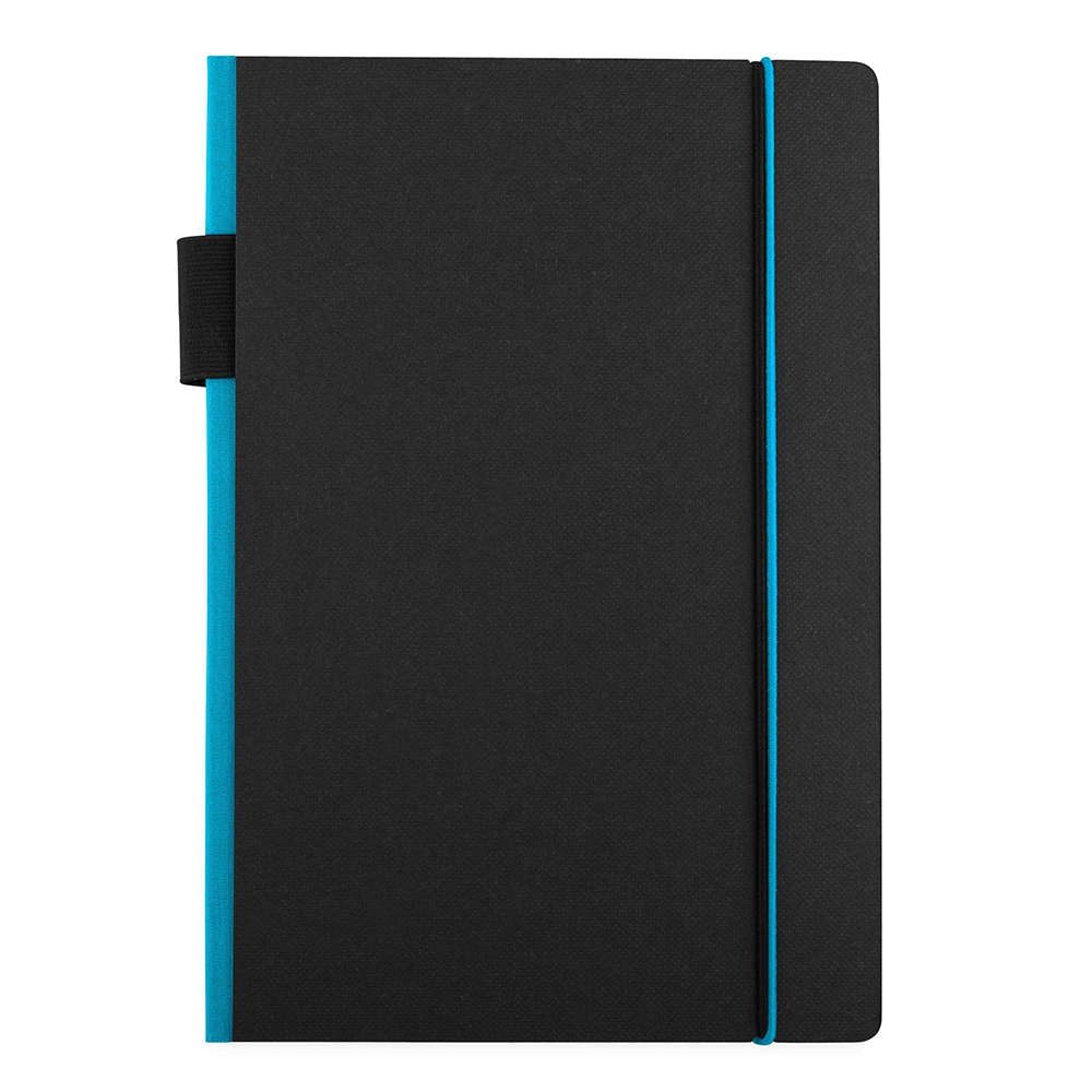 Exclusive design black hardcover notebook. The coloured spine and elastic closure add a touch of character which helps to distinguish it from others. Available in 3 colours.