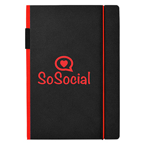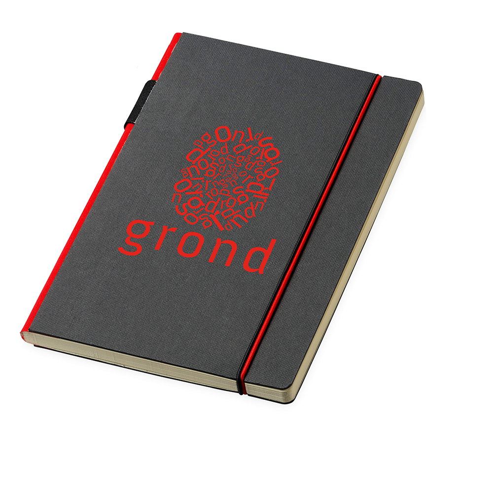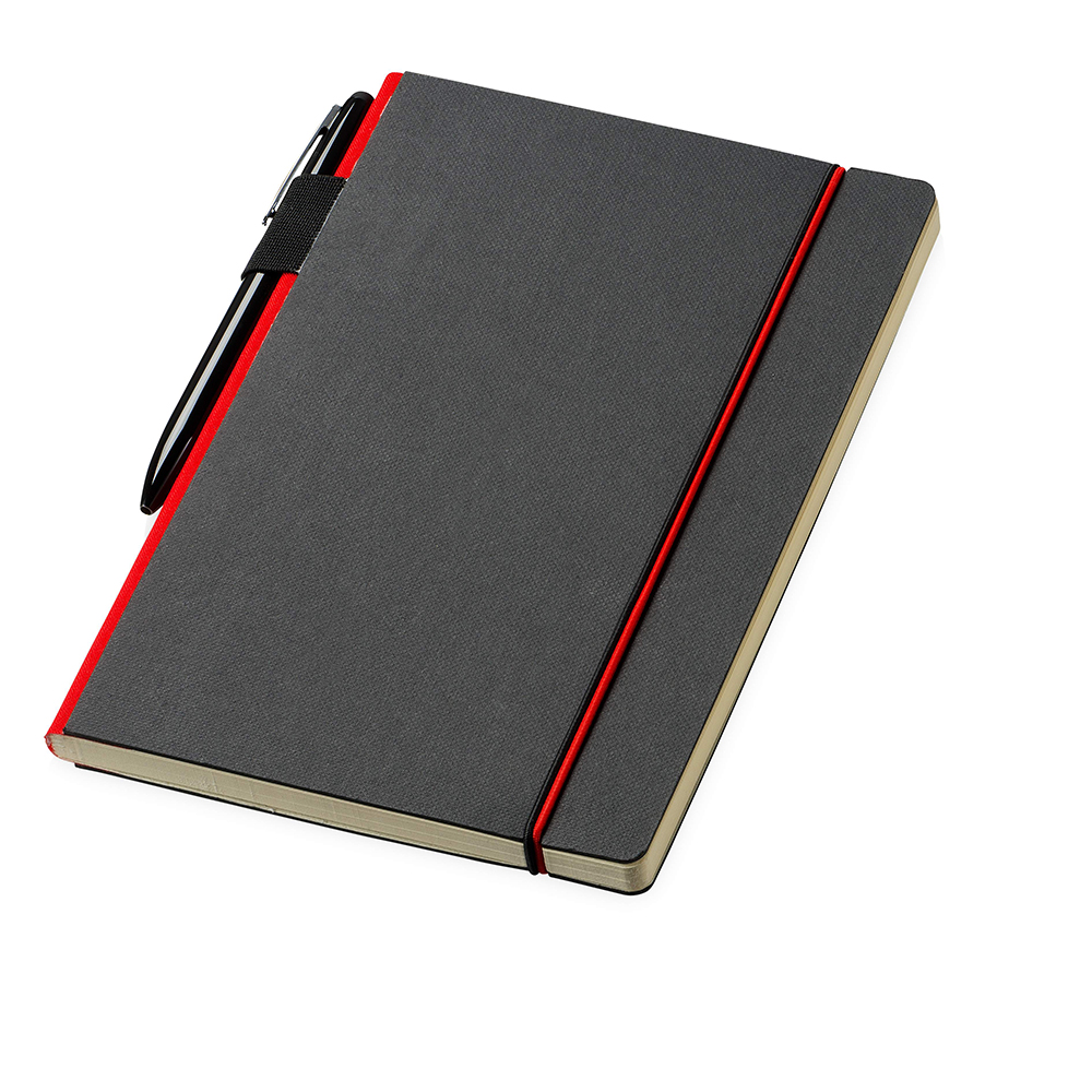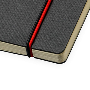 Exclusive design black hardcover notebook. The coloured spine and elastic closure add a touch of character which helps to distinguish it from others. Available in 3 colours.