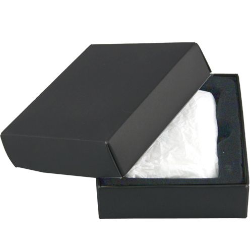 Wrapped in tissue paper in a polybag sitting in a black moulded insert and presented in a plain black 2 part gift box. Packaging Size: 110mm(h) x 120mm(w) x 39mm(d)