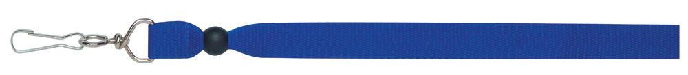 Unprinted royal blue 15mm ribbon lanyard with metal J-hook clip. |
