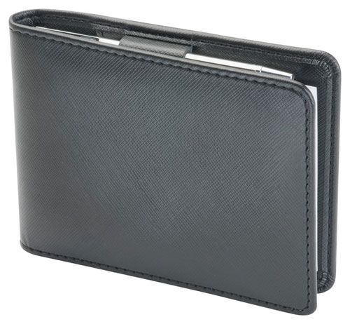 Includes three credit card pockets and 40 page notepad (size 110mm x 75mm x 4.5mm)