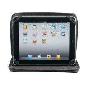 Designed to be used as a stand for your iPad with an upright position for showing presentations or move to view at a lower position for working, this fantastic product is padded to ensure added protection of your iPad. It is very stylish with white stitching, black zipper and a shiny silver zipper handle. Check out our Tablet Compatibility chart to see which tablets fit in the product.